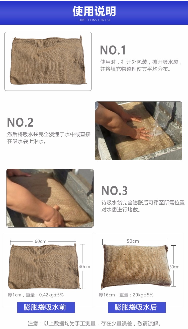 特點:快速吸水膨脹,使用方便快捷,省時省力